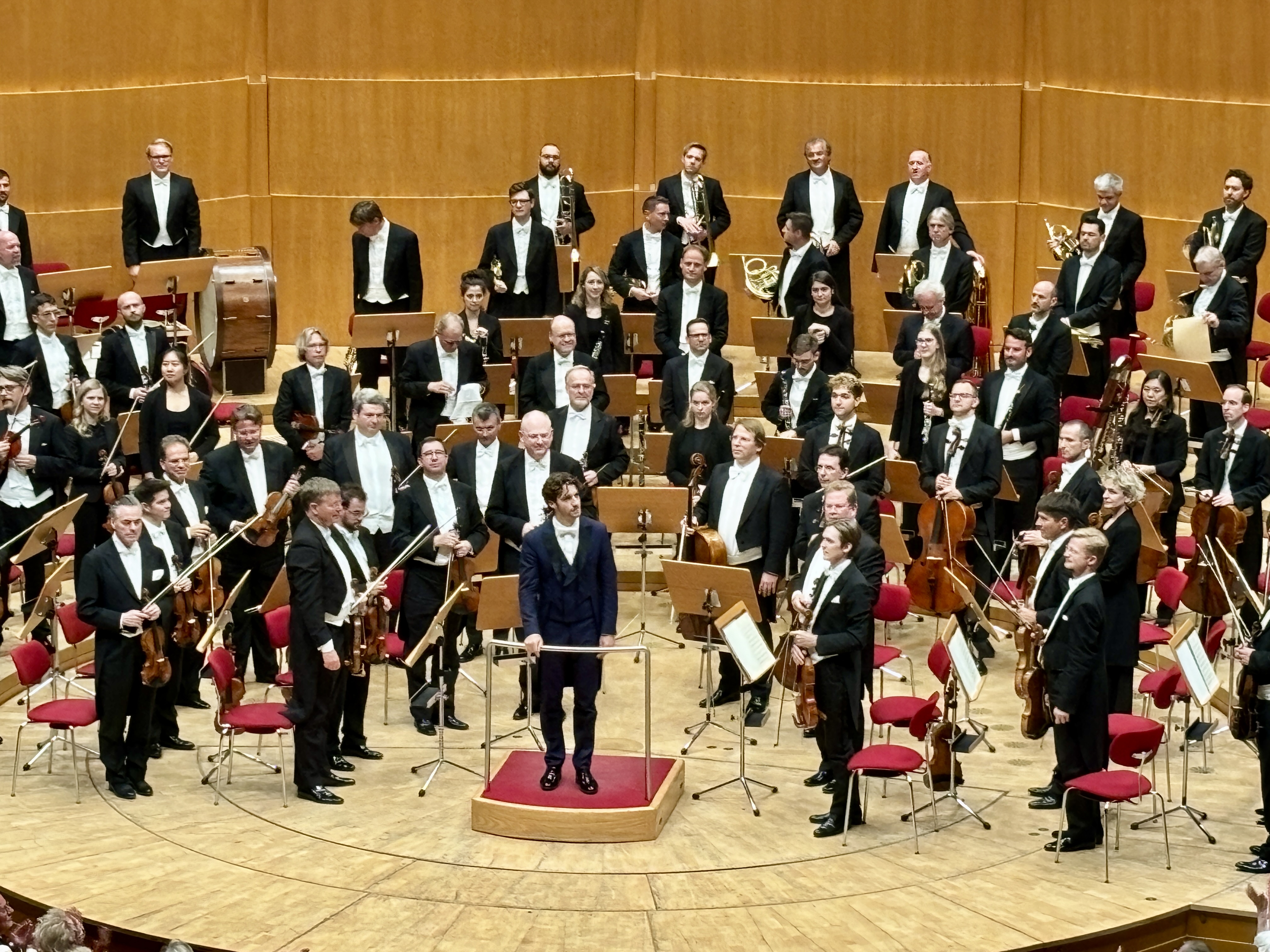 La obra que más ansiaba escuchar era el Capriccio Espagnol de Rimski-Kórsakov, una pieza que descubrí cuando era muy joven y que siempre me ha gustado mucho por su diversidad rítmica y melódica. Al escuchar a orquestas de este nivel, es normal ser un poco más crítico que con otras, pues la Filarmónica de Viena se ha esforzado por esculpir, mantener y promover durante muchos años una imagen de nobleza y perfección. Lo primero que me llamó la atención fue que la orquesta no siempre seguía al director. En el mítico solo de violín del tercer movimiento (“Alborada”), el concertino simplemente comenzó a tocar a una velocidad mucho más alta que aquella indicada por el director. Esto ocasionó que el director lo mirase y tuviera que incrementar el tempo del movimiento completo. Desde mi punto de vista, este tipo de situaciones no debería darse en una orquesta de este nivel, aunque comencé a pensar que este incidente podría ir más allá de un simple error y que se trataba más bien de una lucha de jerarquías y autoridades entre el joven director, quien tiene apenas 34 años, y el experimentado concertino Volkhard Steude. De todas maneras, este pequeño impasse fue casi una anécdota y ciertamente no marcó toda la velada, ya que hubo momentos memorables al tratarse de una orquesta de tan alto nivel. Por ejemplo, cuando la orquesta tocaba en dinámicas muy suaves o durante las melodías interpretadas por el clarinete, quien, a mi juicio, fue el solista más destacado de la agrupación.